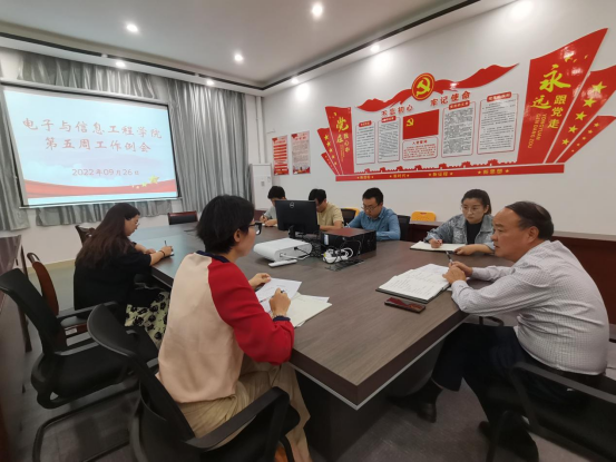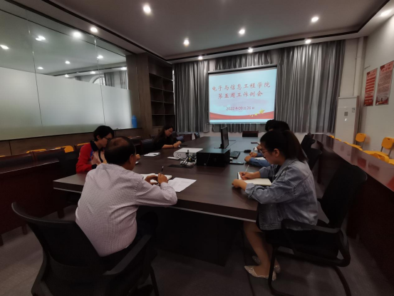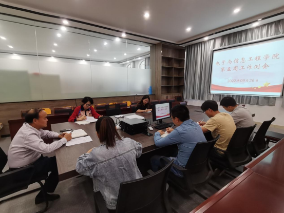 9月26日上午,电子与信息工程学院在二教117会议室召开学院第五周工作例会,总结前期工作,安排部署下阶段工作。