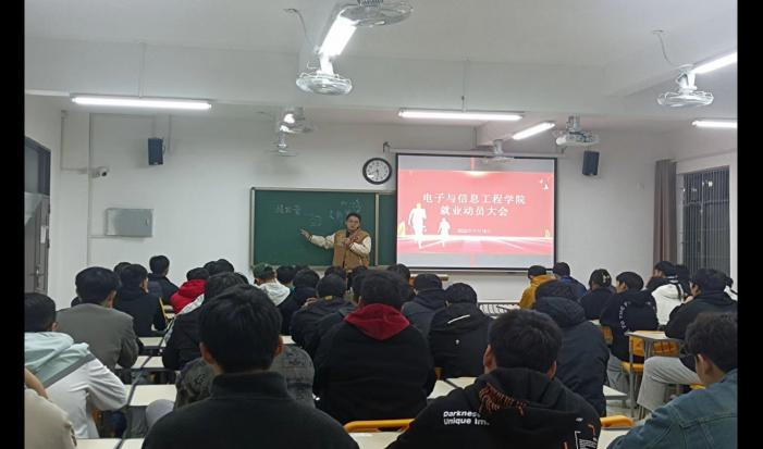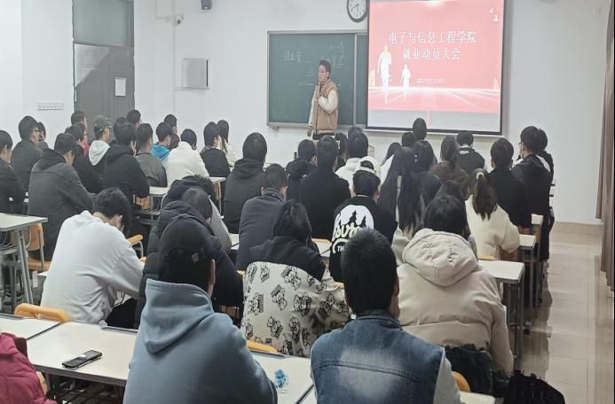 为进一步做好电子与信息工程学院2021级专升本毕业生就业指导工作,给毕业生提供更好的就业指导服务,切实落实推进就业相关工作。11月18日下午5点,电子与信息工程学院在一教304召开电子与信息工程学院就业动员大会。动员大会由辅导员侯绪芳主持,辅导员刘倩和2021级专升本全体毕业生毕业生参加。