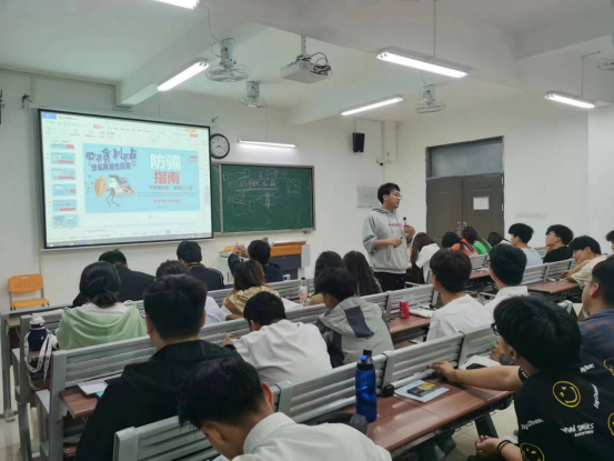 为深入开展校园防诈宣传,进一步提高同学们防范各类诈骗的安全意识和自我保护能力,从根源上预防和减少电信网络诈骗案的发生,维护校园净土,打造更加安全稳定和谐的校园环境,2023年5月8日,电子与信息工程学院团总支书记侯绪芳老师和孙浩老师在全院组织开展“防骗指南”主题班会活动。