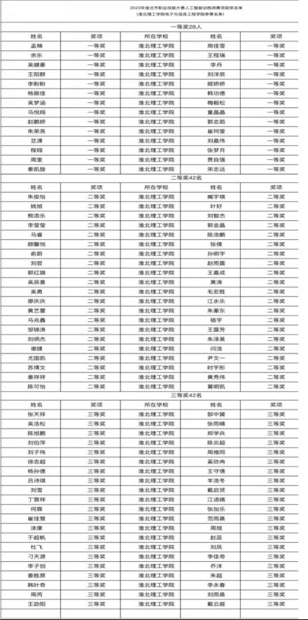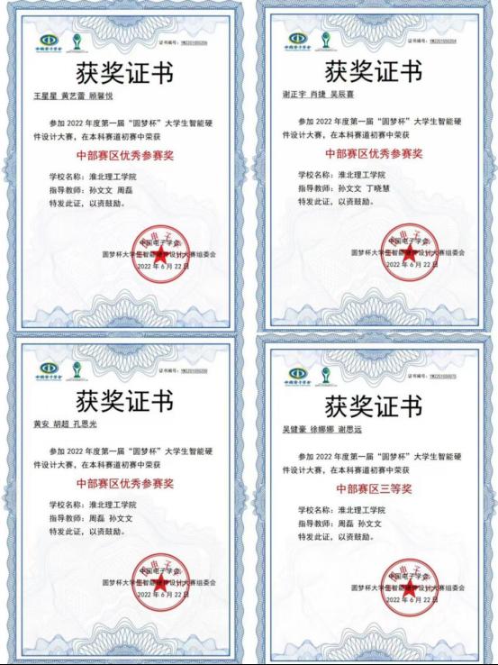 电子与信息工程学院积极推进教学改革创新,用“以赛促教”的教学模式努力培养应用型人才,在“2022年中国大学生计算机设计大赛”中获得了省级二等奖、国家级三等奖;在“2022年圆梦杯硬件设计大赛”中获得省级三等奖、国家级优秀奖;在“2022年全国大学生英语竞赛C类”中获得国家级三等奖;在“2022年大学生创新创业比赛”中,共有26个项目获得省级立项;在“2023年第四届全国大学生算法设计与编程挑战赛春季赛”中获得国家级优秀奖;在“2023年安徽省高校物联网应用创新大赛”中,获得了一个一等奖、三个二等奖、两个三等奖;在“2023年中国大学生计算机设计大赛”中荣获省级二等奖;在“2023圆梦杯全国大学生智能硬件设计大赛”中省级三等奖;在“2023年淮北市职业技能大赛人工智能训练师赛”中获得一等奖28人,二等奖42人,三等奖42人;在2023年第十届“挑战杯·华安证券”安徽省大学生课外学术科技赛中获得了两个省级三等奖。