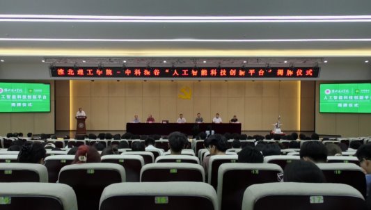 淮北理工学院与中科深谷人工智能科技创新平台的合作协议签订与平台揭牌仪式于6月19日在行政楼一楼学术报告厅举行。淮北理工学院校长杨兵,副校长汪建利,中科深谷集团董事长陈锋,深谷工程师学院副总经理张钊出席仪式。仪式由朱昌杰主持。