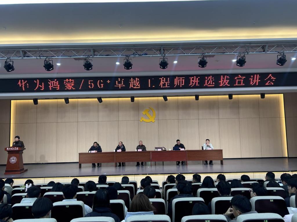 1月6日下午,学校在行政楼报告厅成功举办了华为鸿蒙/5G+卓越工程师班选拔宣讲会。此次宣讲会旨在向广大师生介绍淮北理工学院与华为技术有限公司深度合作推出的卓越工程师班项目,以及华为鸿蒙系统和5G技术的最新发展动态,为有意加入该项目的同学提供全面了解的机会。