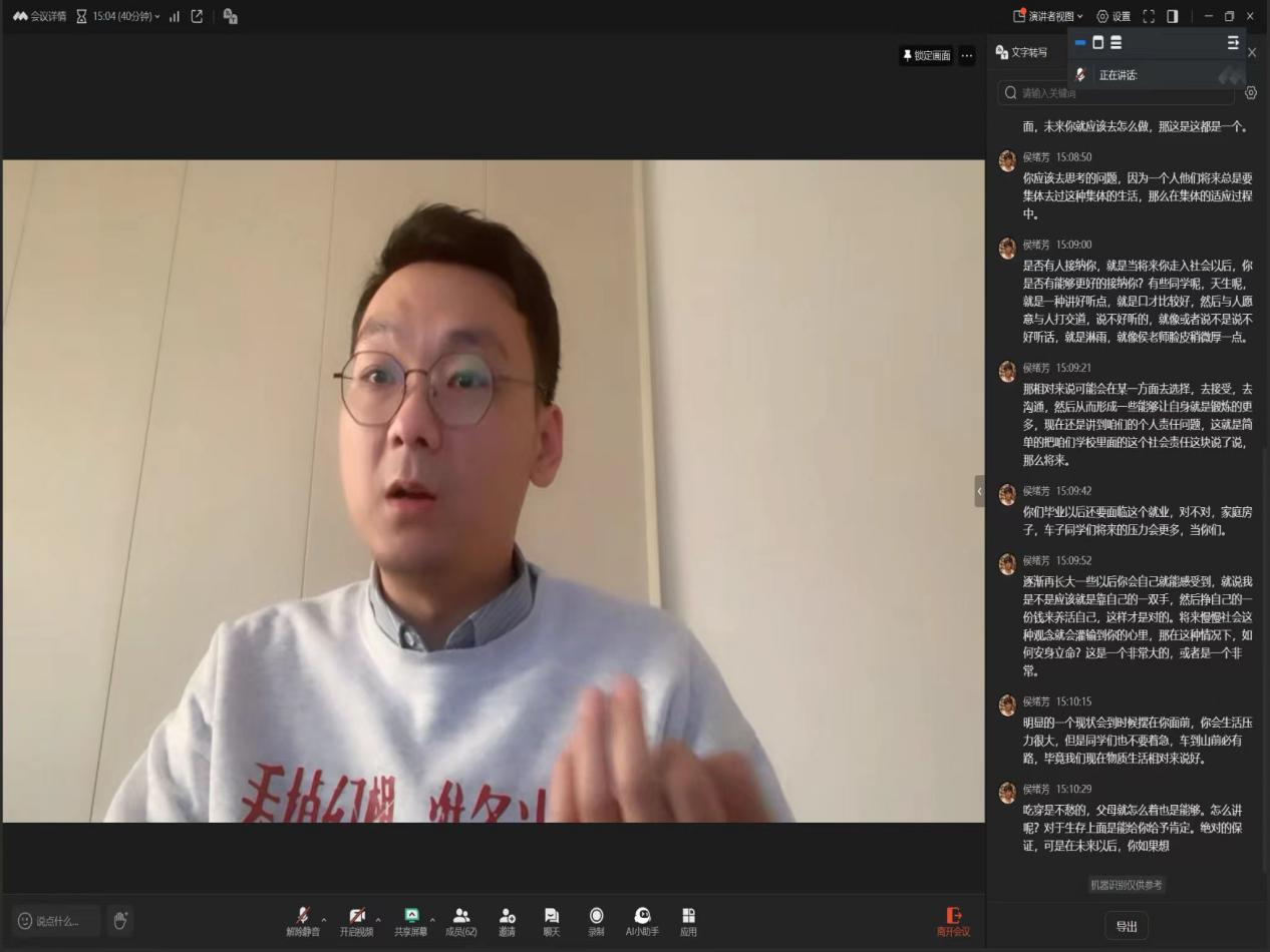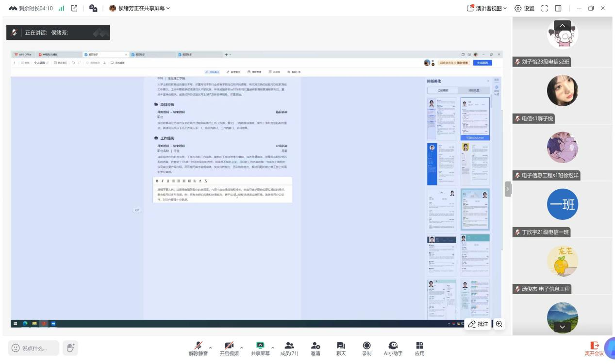 通过六次线上就业指导课程,学生不仅获得了丰富的知识和技能,也对未来的就业方向有了更加清晰的认识和规划。学生们纷纷表示,线上会议不仅增强了他们的就业竞争力,也为他们即将步入职场提供了信心和勇气。