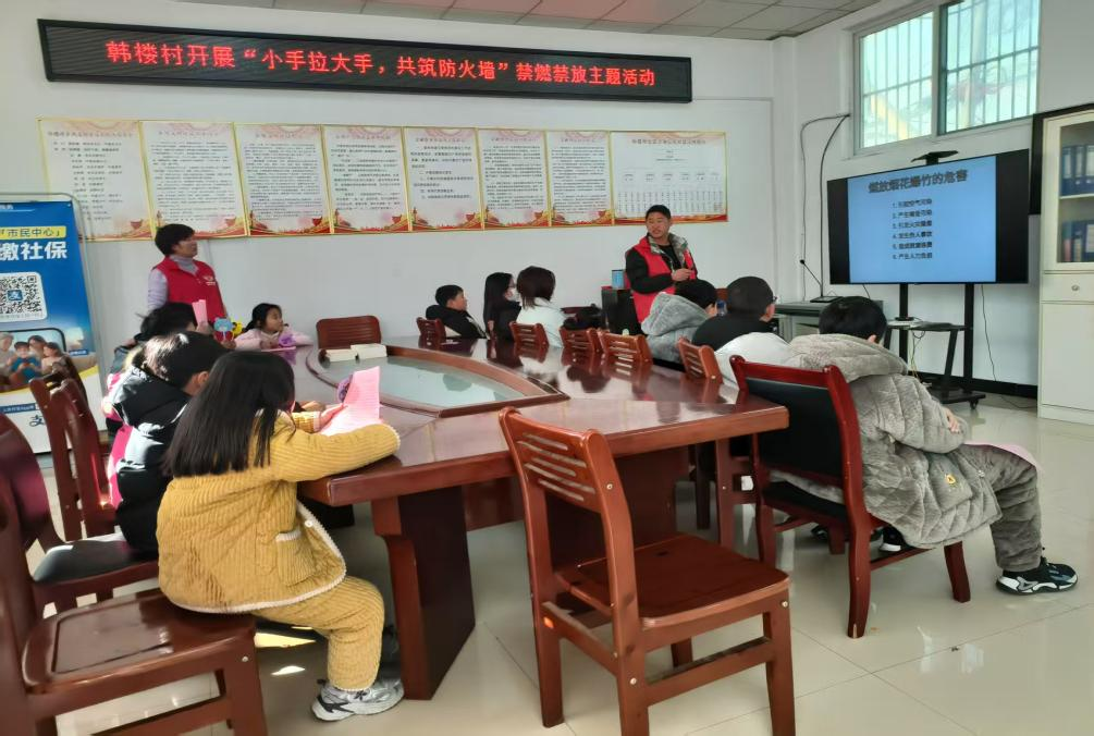 2024级计算机科学与技术1班的丁亦能回到家乡韩楼村,积极参与社区组织的“禁燃禁放”宣传活动。她通过举办讲座、播放宣传片等形式,向村民们普及环保知识,呼吁大家共同守护家乡的蓝天白云。