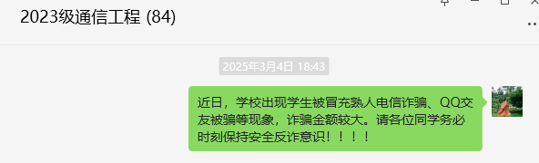 通过开展这些形式多样的防电信诈骗活动,电子与信息工程学院的同学们对电信诈骗有了更深入的了解,防范电信诈骗的意识和能力得到了显著提升。学院将继续把防电信诈骗教育纳入日常学生工作的重点内容,持续开展相关教育活动,保护学生远离电信诈骗的侵害,为构建平安校园奠定坚实基础。