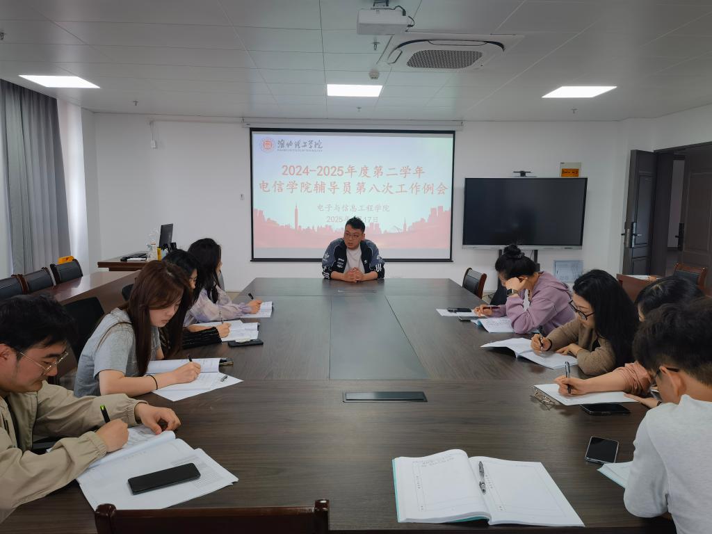 为持续推进学风建设,稳步落实就业工作,电子与信息工程学院于2024年4月17日在学院会议室713召开了2024-2025学年第二学期第八次辅导员工作例会。本次会议由学院书记助理侯绪芳主持,全体辅导员参加会议。