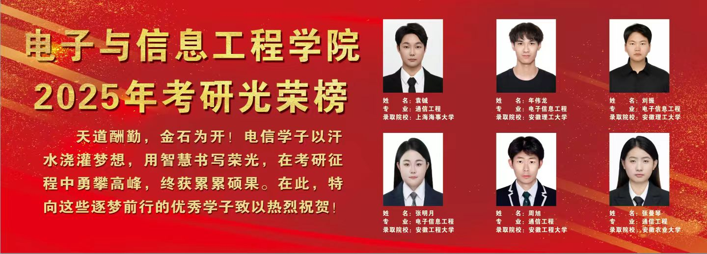 电子与信息工程学院将以此次考研硕果为契机,继续深化教育教学改革,强化产学研融合,为学生成长成才搭建更广阔的平台。期待更多学子以梦为马、不负韶华,在未来的求学与人生道路上勇攀高峰,续写属于自己的精彩篇章!