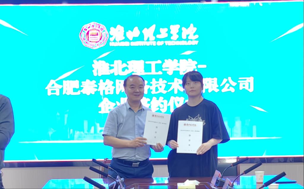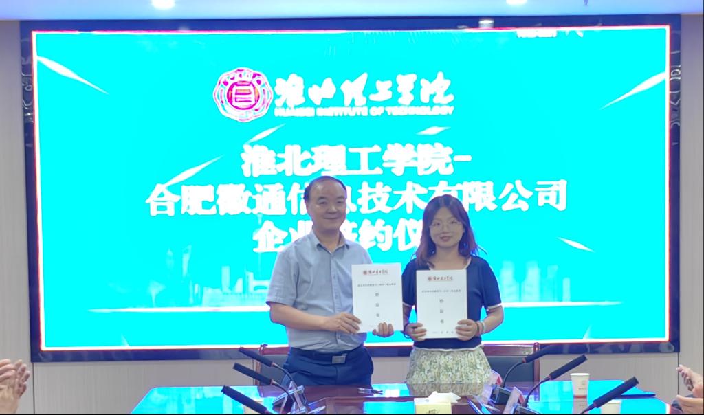 在与会人员的共同见证下,电子与信息工程学院与安徽力瀚科技有限公司、安徽云金科技有限公司、合肥徽通信息技术有限公司、合肥泰格网络技术有限公司、安徽鑫钜华科技有限责任公司五家企业签订了校企共建实习(实训)就业基地协议书,标志着双方合作迈入新阶段。