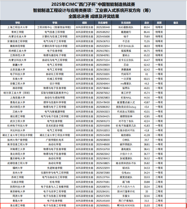 在2025年CIMC“西门子杯”中国智能制造挑战赛智能制造工程设计与应用类赛项:工业嵌入式系统开发方向(A类)中,我院学子再创佳绩。经过积极备赛与激烈角逐,由曹新建老师指导的单吉祥、刘梓皓团队成功晋级全国总决赛并荣获二等奖。继去年首次参赛后,我院在该项高水平赛事上实现了奖项等级的突破。 此外,我院参赛队伍在全国初赛阶段表现优异,共获全国初赛一等奖2项、二等奖1项。