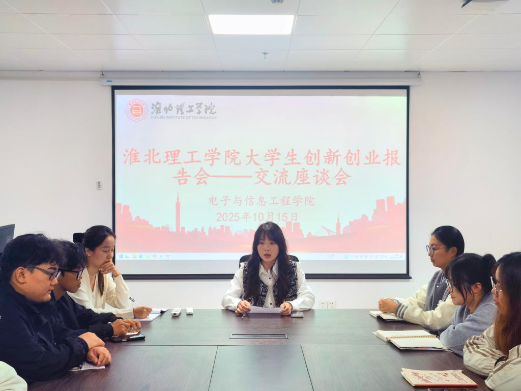 2025 年 10 月 15 日(周三)下午 14:30,淮北理工学院大学生就业创业报告会如期举行。中国科培教育集团董事长叶念乔先生以 “洞见青春赋能未来 —— 草根者的逆袭” 为题展开分享,真挚的故事与深刻的感悟,为在场每一位学子带来直击心灵的触动与满载而归的收获。报告会落幕之后,电子与信息工程学院迅速组织召开主题座谈会,让这份触动持续延续、让这份思考不断深化,引导学子在思想碰撞中洞见青春无限可能,凝聚赋能未来的磅礴力量。座谈会由学院团总支书记刘倩主持,辅导员李影芝、李晓萌、陈一飞等,电信学院优秀学生代表参会。
