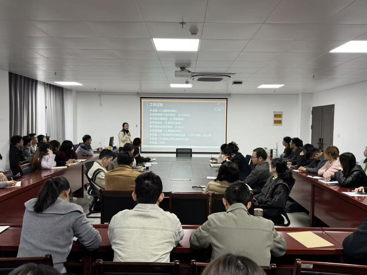 在具体工作指导环节,陈冉冉老师和李娟老师分别围绕毕业设计的工作过程及论文撰写规范展开详细讲解。陈冉冉老师结合以往工作经验,对毕业设计从选题申报、任务书下达、学生调研与方案设计,到中期进展检查、成果修改完善等全流程工作要点进行梳理,明确各阶段的时间节点和工作要求,提醒指导教师及时跟踪学生进展,帮助学生解决遇到的问题,确保毕业设计工作有序推进。李娟老师针对论文撰写过程中的各项规范要求进行重点强调。她从论文的格式排版、文献引用、图表标注,到内容的逻辑结构、语言表达、创新点突出等方面,结合具体案例进行详细说明,指出常见的问题和错误,为教师指导学生撰写论文提供了清晰的标准和方向,避免因格式不规范、内容不严谨等问题影响论文质量。