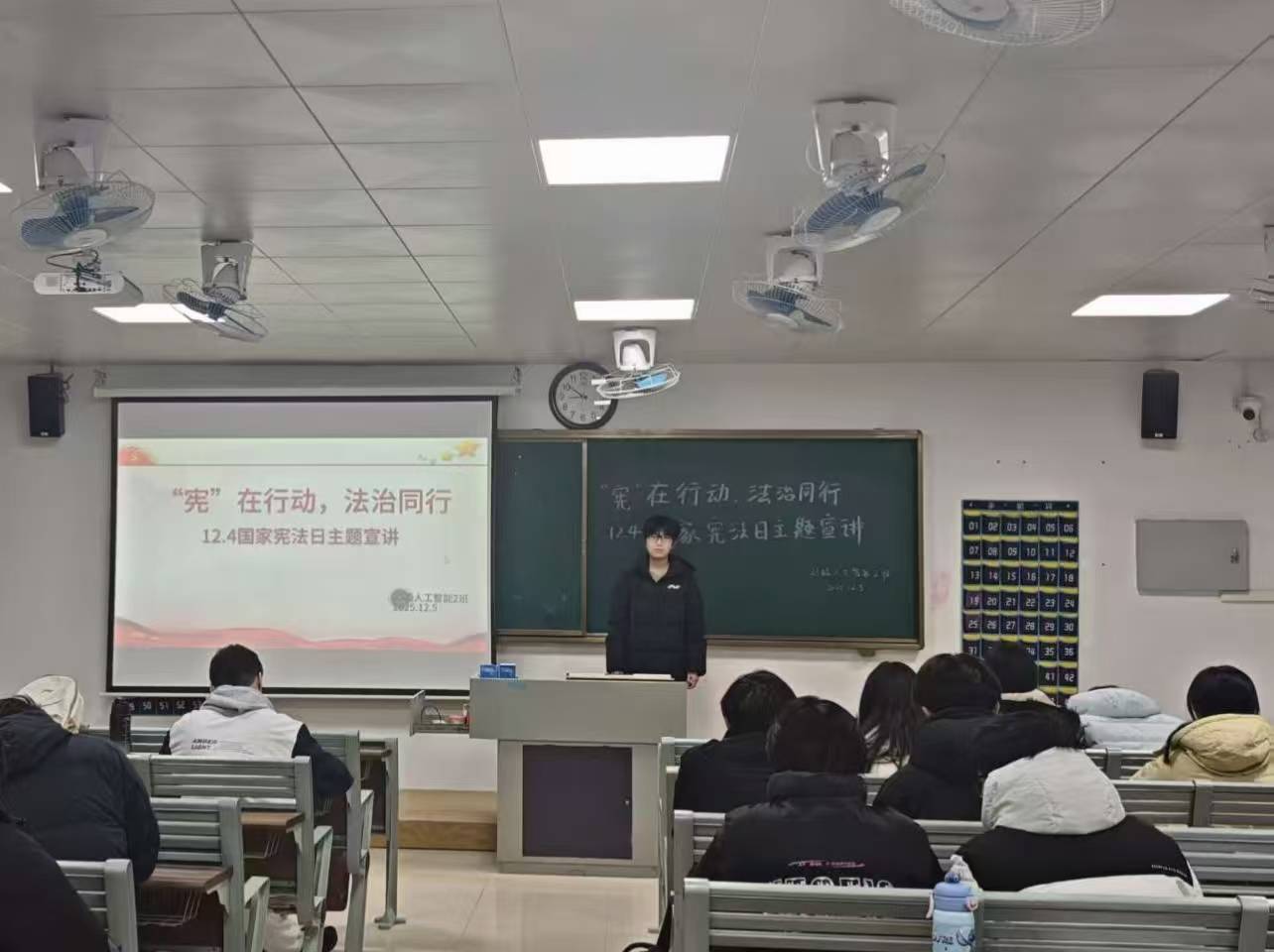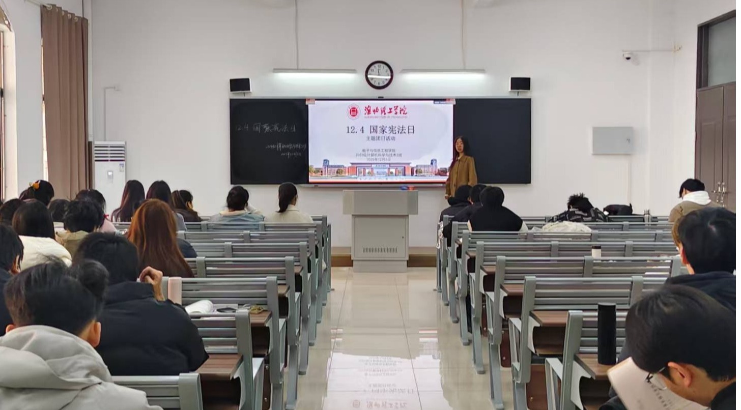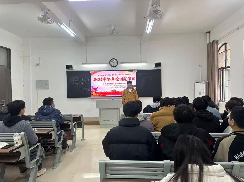 为深入学习宣传习近平法治思想,大力弘扬宪法精神,引导青年学生增强宪法意识、树立法治观念,在第十二个国家宪法日来临之际,电子与信息工程学院组织2023级、2024级和2025级各班级开展“12・4”国家宪法日主题宣讲活动。