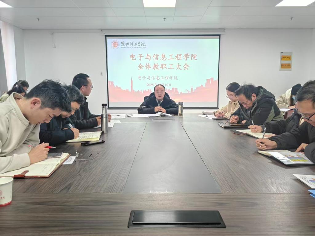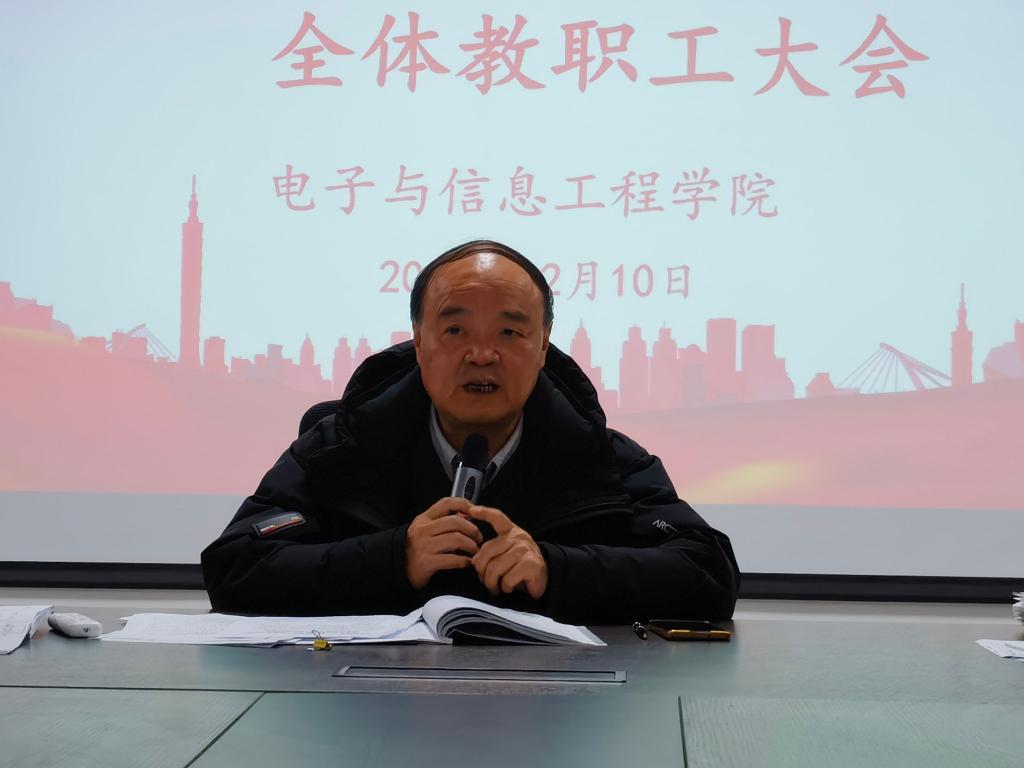12月10日,电子与信息工程学院在713会议室召开全体教职工大会,全体教职工参会,会议由朱昌杰院长主持,系统部署学院近期重点工作。
