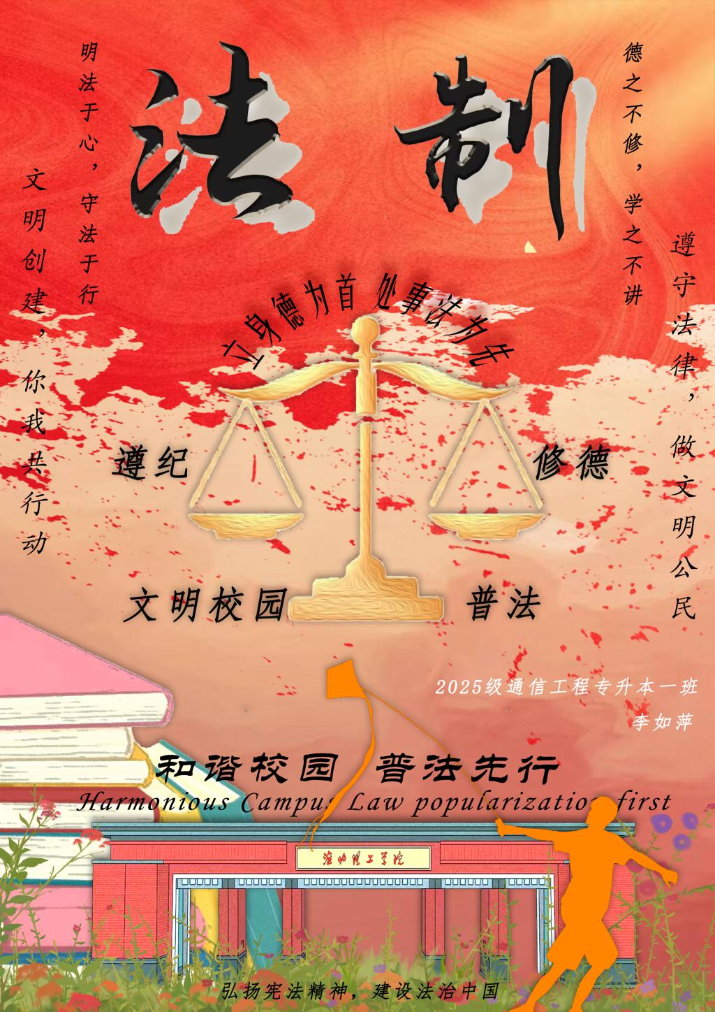 为深入落实立德树人根本任务,深化“依法治校、以德治校”理念,积极响应学校2025年“普法、修德、遵纪,创建文明校园”专项活动号召,电子与信息工程学院精心谋划、系统推进,以主题演讲、文明修身大讨论、21天学习打卡、海报创作展示、文明空间评选、主题班会六大系列活动为载体,构建起全方位、多层次、立体化的育人体系,让法治观念、道德修养、纪律意识深度融入校园生活,专项活动取得丰硕成效。