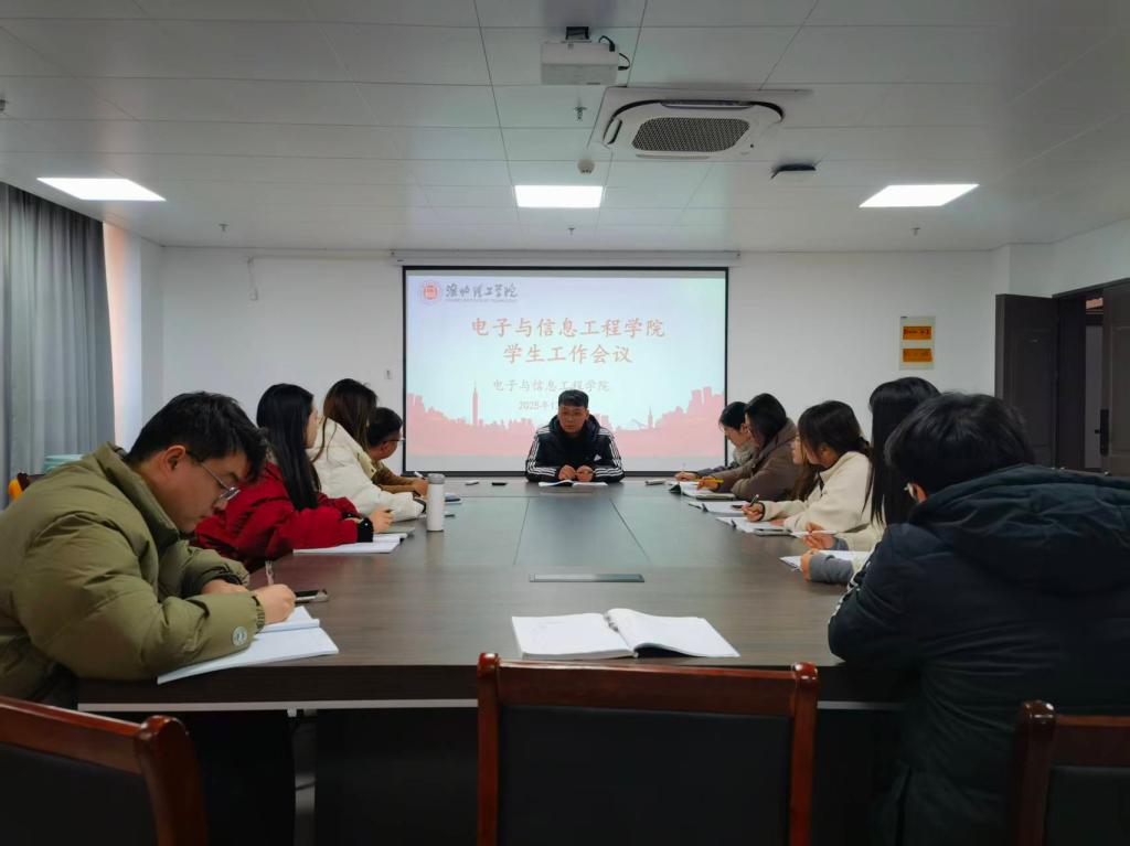 2025年12月15日,电子与信息工程学院在学院会议室召开学生工作会议,全面部署近期重点学生工作。会议由侯绪芳主持,全体辅导员参会。