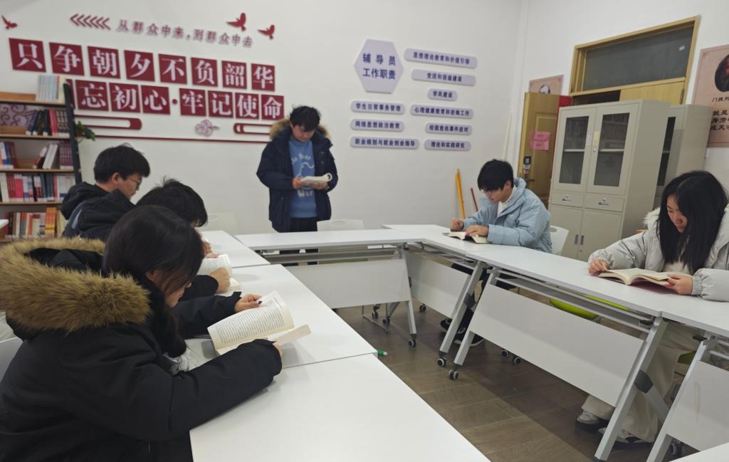活动以《中国共产党简史》《红色家书》等经典书目为载体,通过"领读+接龙+感悟分享"的互动模式展开。学生党员代表声情并茂地诵读《可爱的中国》节选,带领全体成员重温革命先辈的赤子情怀;党员们接力朗读《习近平的七年知青岁月》片段,结合自身成长经历畅谈"青年担当"。