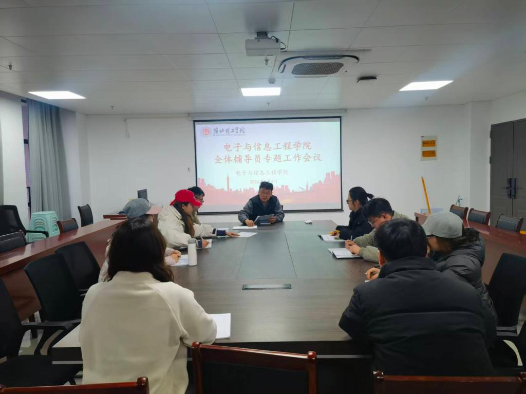 2026年1月4日下午,电子与信息工程学院召开辅导员工作会议,重点围绕一站式服务社区建设、天气变化下学生健康保障、学生毕业设计推进及毕业生就业指导等核心工作开展总结部署。学院书记助理侯绪芳主持会议,全体辅导员参会。