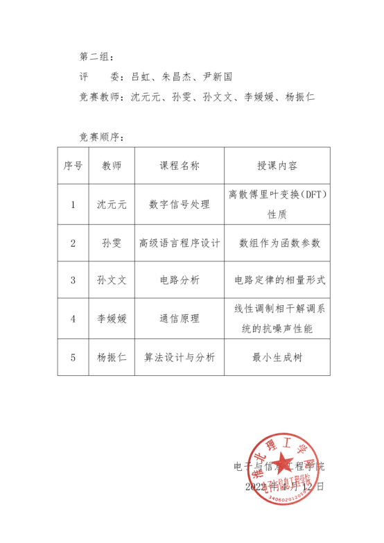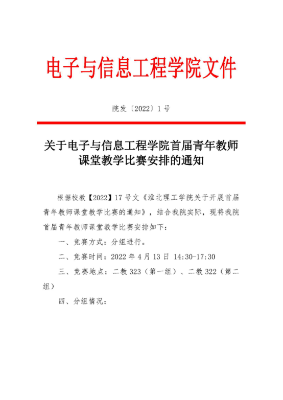 关于电子与信息工程学院首届青年教师课堂教学比赛安排的通知