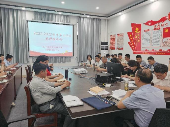 根据教务处《关于开展2022-2023学年第二学期期中教学检查的通知》要求,5月17日下午2点,电子与信息工程学院于二教117室召开了本学期期中教学检查教师座谈会,学院全体教职工参加本次座谈会。