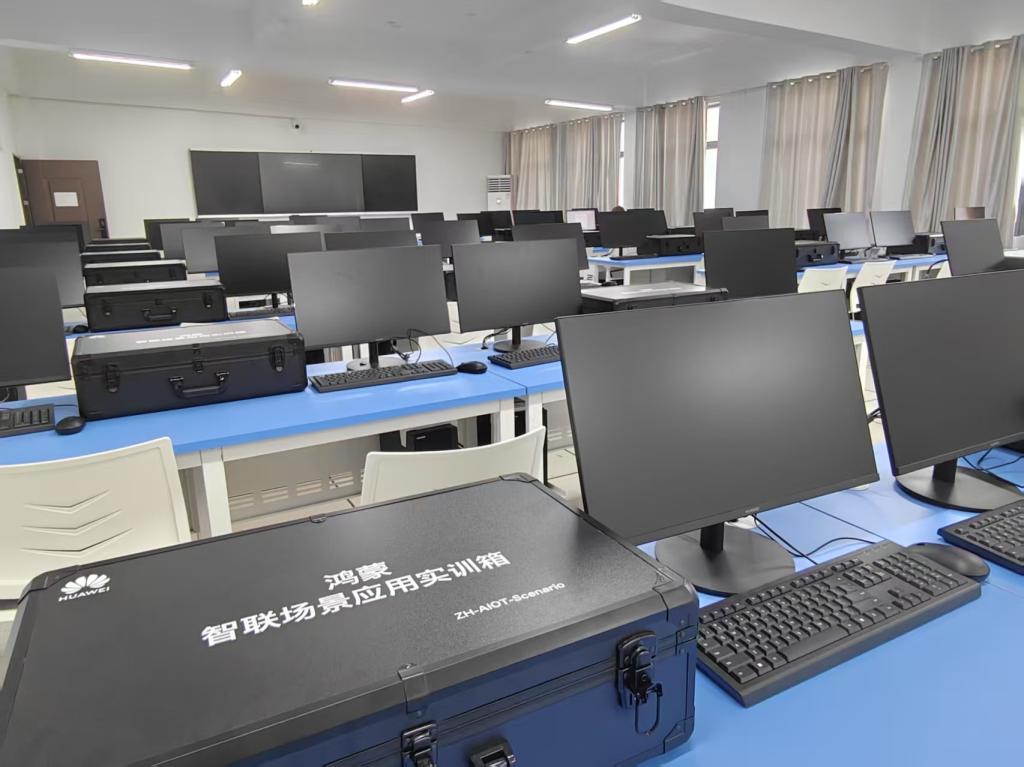 华为鸿蒙智联应用实验室建于2025年,占地面积160平方米,是基于HarmonyOS分布式能力的物联网开发平台,通过对超级终端联动、原子化服务及设备虚拟化功能的实践,让学生掌握多设备协同开发与跨端任务迁移技术,在此基础上,理解万物智联生态的构建逻辑,培养学生具备全场景鸿蒙应用创新能力,为学生在智能家居、车载系统等领域的跨界开发提供生态级工具支持。