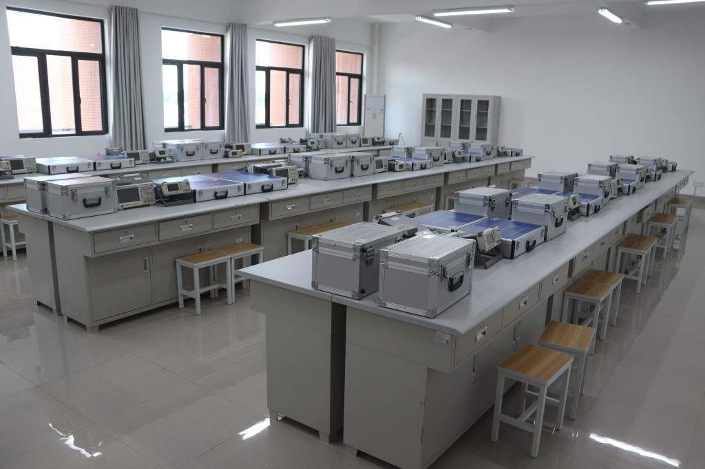 模拟电子技术实验室建于2021年,占地面积120平方米,是一个基于电子元器件与模拟电路设计的专业实验平台,通过对放大器、滤波器、振荡器等典型模拟电路的搭建与测试,让学生掌握模拟电路的基本原理、分析方法及设计流程,在此基础上,认识高性能模拟集成电路的发展方向,培养学生具备运用电路理论分析和优化实际电子系统的能力,为学生夯实电路设计、故障诊断与创新实践能力提供关键教学载体。