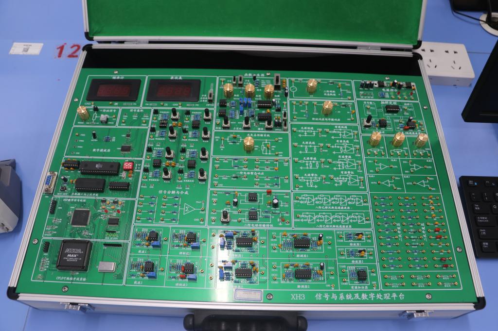 信号与系统、数字信号处理实验室建于2021年,占地面积120平方米,是一个基于信号分析、算法设计与系统仿真的综合实验平台,通过对连续/离散信号变换、滤波器设计及数字处理算法的编程实现,让学生掌握信号处理的核心理论、系统建模与算法实现方法,在此基础上,了解实时处理技术在信号领域的新进展,培养学生具备运用信号理论解决通信、控制等场景复杂问题的能力,为学生在算法开发、系统仿真和工程应用方面的技能深化提供先进平台。