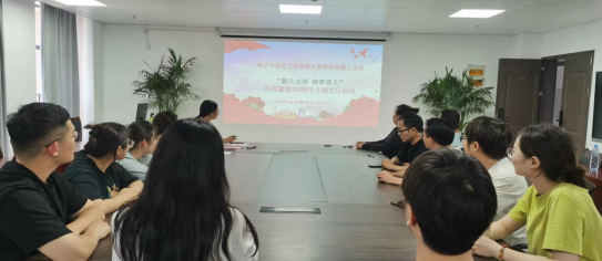 为热烈庆祝中国共产党成立103周年,弘扬党的光荣传统和优良作风,进一步激发广大党员干部的责任感和使命感,电子与信息工程学院计算机科学教工支部7月1日中午召开了一场以“薪火永续·铸梦育人”庆祝建党103周年为主题的党日活动。