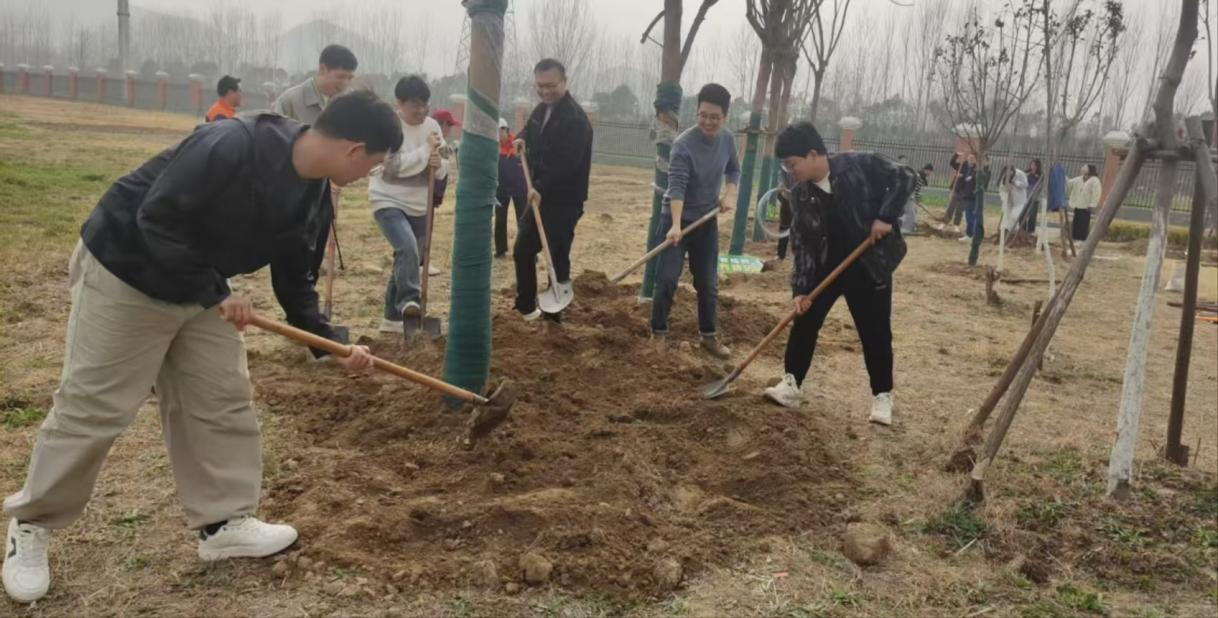 2025年3月12日下午,风和日丽,电子与信息工程学院电子通信教工支部在支部书记的带领下,于淮北理工学院教职工宿舍楼前开展了一场以“携手植树,绿满校园”为主题的植树活动。此次活动旨在积极响应国家生态文明建设的号召,通过教职工植树活动为校园增添生机活力,以实际行动践行绿色发展理念。