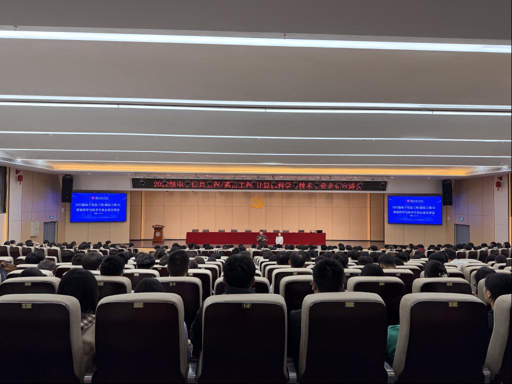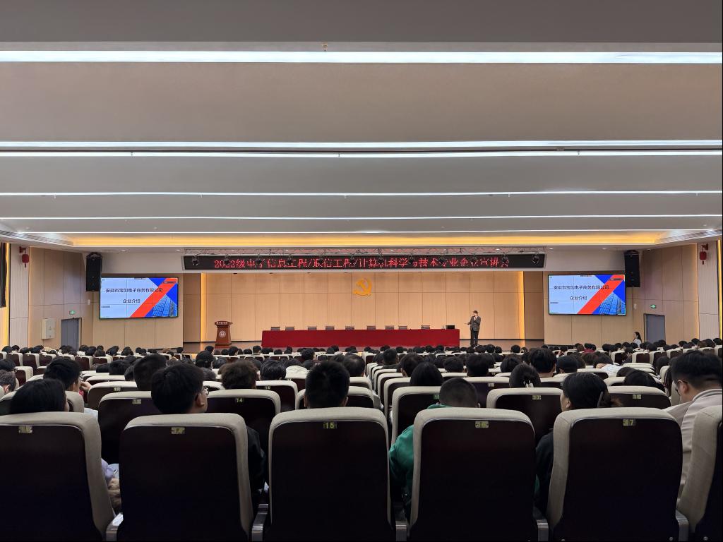 为扎实推进2026届学生专业实习工作,搭建校企协同育人平台,10月15日晚,淮北理工学院电子与信息工程学院在学校一楼报告厅成功举办专业实习宣讲会。本次活动面向2022级电子信息工程、通信工程及计算机科学与技术三个专业300余名学生,特邀安徽硅砚人工智能基础资源技术有限公司与安徽宝创电子商务有限公司两家本地优质企业来校,为学子们带来专业对口的实习岗位与成长机会。