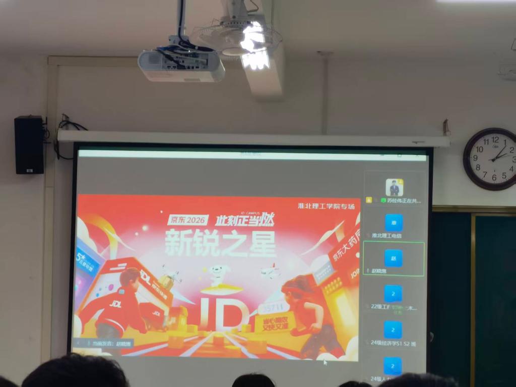 为进一步拓宽学生就业渠道,帮助学子深入了解行业头部企业招聘需求与职业发展路径,2025年10月22日下午,淮北理工学院精心组织的京东管培生线上宣讲会顺利举行。电子与信息工程学院积极响应,广泛动员2026届毕业生参会,通过企业零距离讲解,为学子求职导航赋能。