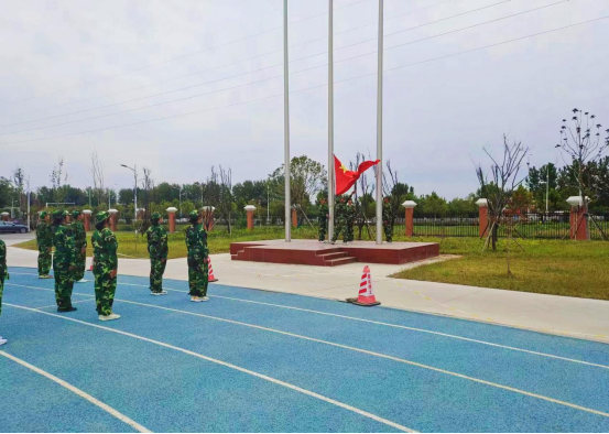 9月27号下午,四十二名同学组成的国旗护卫队正在进行艰苦训练,他们喊着嘹亮的口号,迈着整齐的步伐,展现出高昂的军姿。方阵最前端的护旗手由三人组成,一人居中执旗,两人持枪护与两侧。他们走在最前方引领着整支队伍。