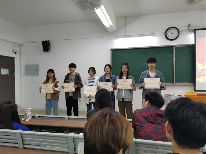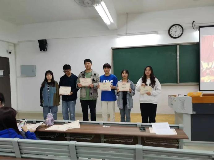 荣获演讲比赛奖项的同学有刘紫君、王腾达、任东、张海新、汝妍妍、余乐、徐娜娜、王露芳、王阳群、时宇彤、袁铖。由刘倩老师为获奖同学颁奖。
