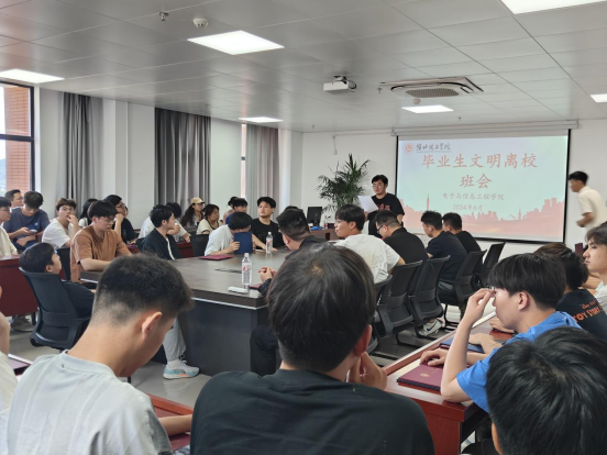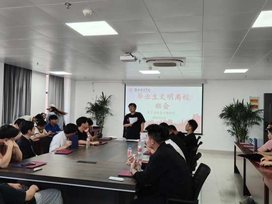 为做好2024届毕业生离校教育工作,营造温馨和谐的毕业氛围,保障毕业生安全文明有序离校,6月12日下午,电子与信息工程学院在行政楼713召开2024届毕业生离校工作布置会暨安全文明离校大会。全体2024届本科毕业生参加会议,会议由辅导员孙浩主持。