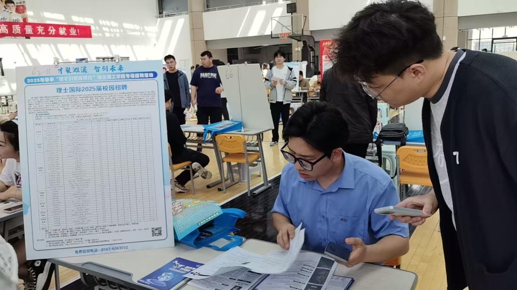 2025年4月18日,在学校举办的校园招聘会上,电子与信息工程学院辅导员积极作为,带领毕业生与企业深入交流,全力促进就业,现场氛围热烈。